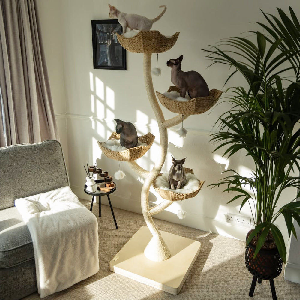 • The wood for our naturally-shaped cat trees is sustainably sourced from trees that no longer bear fruit.